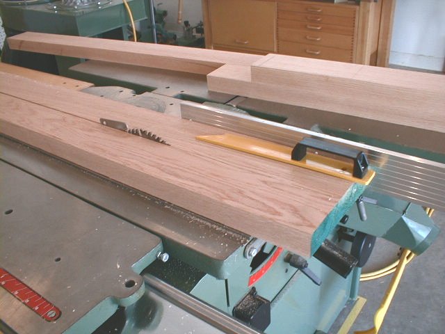 Ripping the Mullions and Rails The mullions , rails and panels need to be ripped to rough width also. While the saw is setup to rip, perform all of the remaining rip cuts to separate the various pieces from the timber.