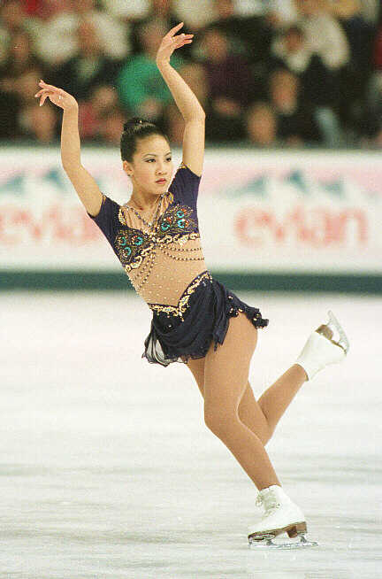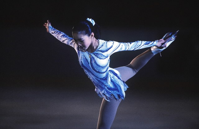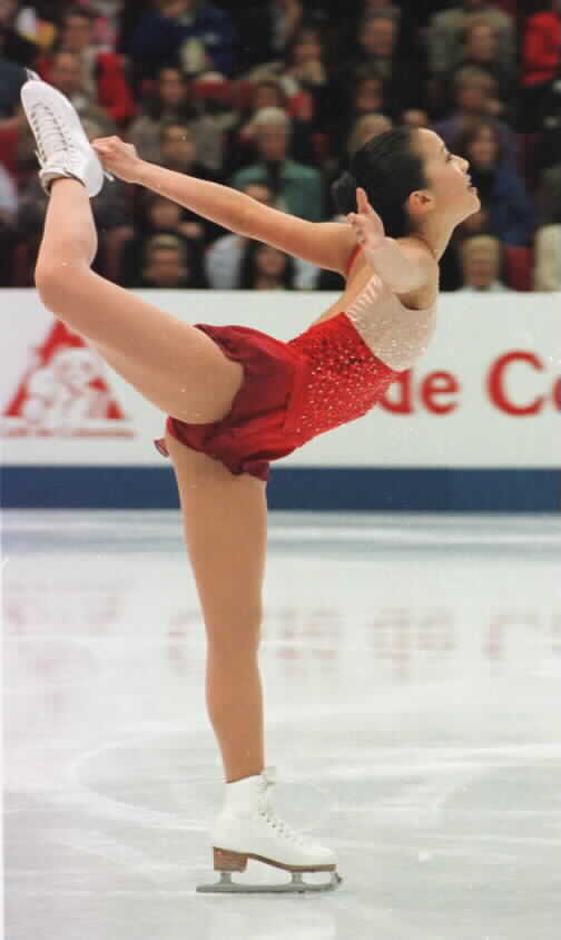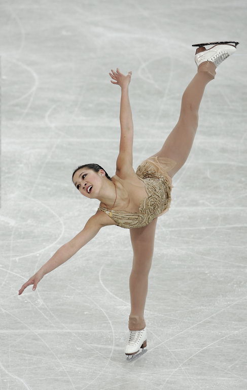 Michelle performs a spiral during her free skate to Bolero at Worlds.