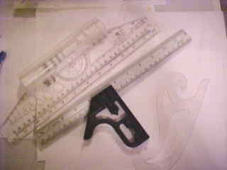 When you start advancing, you'll appreciate having a cicle template handy. Mostly, I use it for beginning guidelines(covered elsewhere). It's definitely something I reconmmend--not too pricy either. Rulers you can use for measuring, and of course straight lines, but it you want cUrVy lines, get yourself some french curve rulers. The usual purpose for these is actually to allow smooth inking over curves in comics, etc. Flexible rulers can be purchased as well. If you're going to be inking with pen nibs, beveled rulers would let you use them without blotting ink.