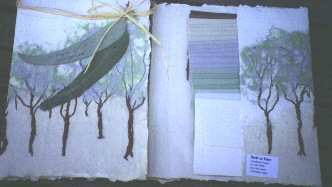 I love working with paper, it is such a versatile medium. It can be cast, manipulated, sewn and painted with. It can be used for books, lamps, sculptures and wall art as well as being for writing on. There have been many things I have explored with paper, but my favorites would have to be pulp painting and making delicate but strong plant fibre papers which I colour brightly and use for quilts and lamps. My inspiration comes from the Australian bush and from the paper itself. My favorite play place when I was growing up was a bush gully at the back of our house and the love of the bush has stayed with me since then.
