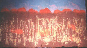 Pulp painting 'Red centre' made from recycled paper and cotton linter