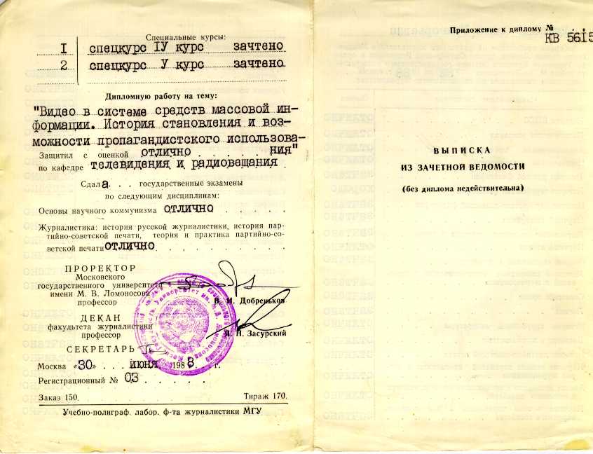 Graduated: Lomonosov State University, Moscow, Faculty of Jouralisme (1982 - 1988); Moscow Pedagogic Institute (1998-2000)