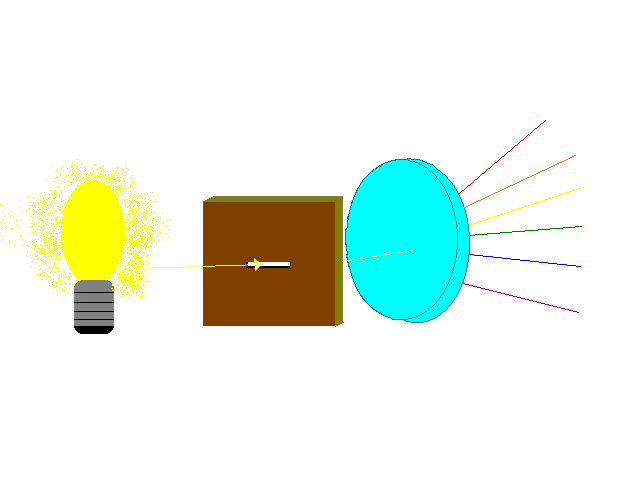 The spectroscope was invented in 1814 by physicist Joseph von Fraunhofer. Light given off or reflected passes through the slit and is split into different wave lengths by a prism. Scientists use it to determine the makeup of planets and celestial objects. The spectroscope works because different elements absorb and reflect different light, so by studying the spectrographs, scientist can determine which elements are found in a planet or celestial body's makeup.