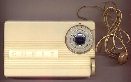 A 3-tube earphone-only radio -- no speaker -- small and slim, 5 1/2" x 3 1/2" x 1 1/4"