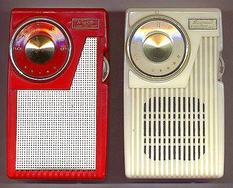 Both of these cabinets are made of thermosetting plastic (like the Bakelite, Catalin or Urea tube tabletop radio cabinets of Days of Yore) rather than the softer (almost always ABS) thermoplastic material used for the majority of transistor radio cabinets in the '50s and '60s...