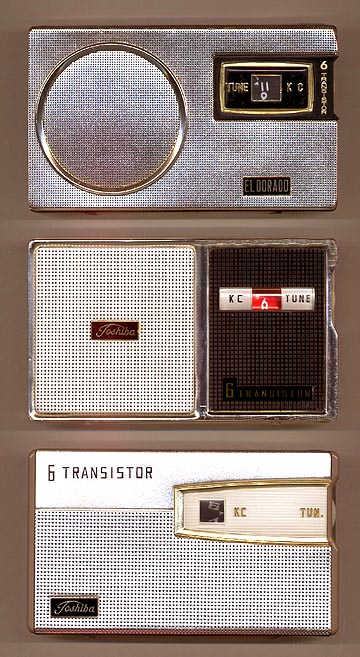 All three models are 6-transistor radios, and none of them would win any prizes in a beauty contest. I think "El Dorado" was a Toshiba distributor name in Canada, but you didn't hear that from me... The middle set in the above photo -- the 6P-10 -- may in fact be a fairly commonly-found radio, but I had never seen one until just a few years ago.