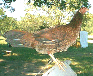 This page will show just a few of our breeding pairs. The cocks don't show at their prime due to molt (thanks to the 100+ degree heats of our South Texas summers) |