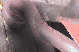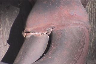 | Pics of the old cracked exhaust manifold. The leak almost sounded like tapping lifters. |