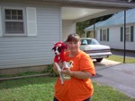This is a photo of Angel Juergens Angel's daughter Dawn & son in law Paul Granddaughter Aimee Granddaughter Cindy Grandson Ryland Grandson Joseph Grandson Chris Her daughter's dog Jumper Angel Ryland Ryland played baseball on a team named the Runts