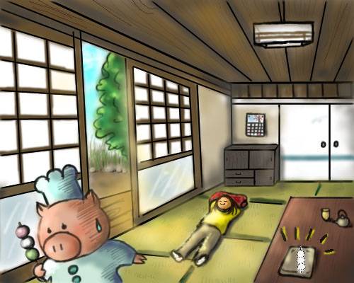 Napping.... I drew this picture thinking of my grandmother's house. Her house is a very traditional style, and I love it !