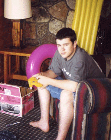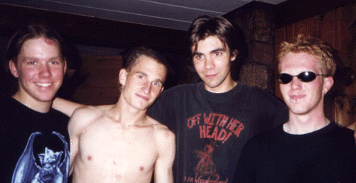 Dan, Ben, Travis and Nick after Paintball, Note the welt on Dan's forehead...