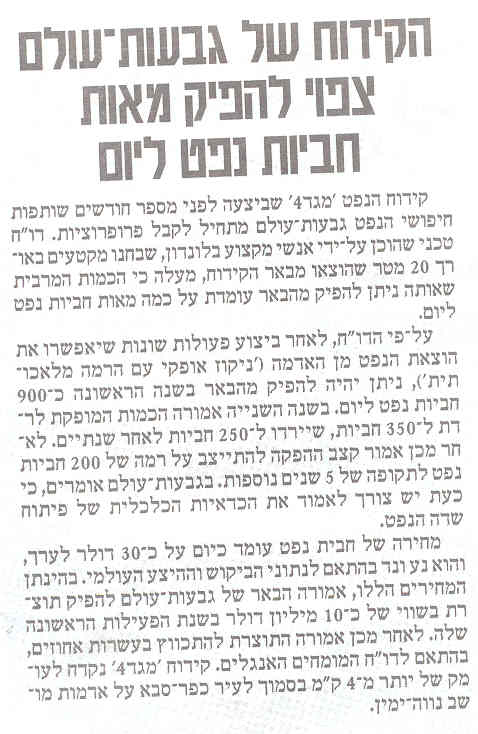 קידוח נפט בישראל (בסמוך לכפר-סבא)