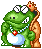| NAME: Yaridovich GAME(S): Super Mario RPG INFO: Yaridovich is one of Smithy's henchmen, having used a disguise as many Mushroom people to take over Seaside Town. (Locking all the town's real inhabitants up helped, too). Posing as the elder, he requests that Mario bring him the Star Piece from the sea. Once Mario returns, Yarid reveals himself, steals the Star Piece, which Mario just won from Johnny Jones, and splits to the coast. Unfortunately for him, the Blade is late, and before he can escape, Johnny and Mario confront him and defeat the cretin. NAME: Yoshi GAME(S): Yoshi, Yoshi's Cookie, Yoshi's Safari, Super Mario World, Yoshi's Island, Yoshi's Story, Super Mario Kart, Super Mario RPG, Mario Kart 64, Super Mario 64, Paper Mario, Mario Party, 2, 3 Tennis, Golf INFO: Yoshies are bundles of cuteness! Actually, they're very hungry dinos, but who can tell the difference? Yoshi first served as transportation for Mario and Luigi, but has since moved on to his own adventures. Actually, as the prequel Yoshi's Island explains, the Mario Bros. owe their lives to Yoshi, who helped save them both from Kamek's treachery when they were but infants. Anyway, Yoshies are very, very, cool. And there's almost nothing they can't eat! ^^ |