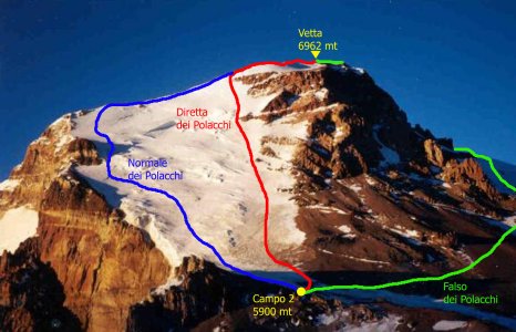 Possibili vie per raggiungere la vetta dal Campo 2 |