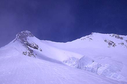 e pendii nevosi (fino a 50°) fino alla vetta italiana (4021 mt) e poi