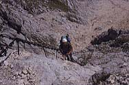 fino a che la cresta finisce in uno strapiombo, all'inizio attrezzato da