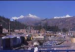 la citta' con la sua mole imponente. Le montagne sono veramente magnifiche.
