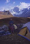 un'ora raggiungiamo il campo a 4100 mt. Piero sta sempre peggio. Ha fatto