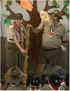 Raven being bribed by the scouts, who covered his staff in lollies.