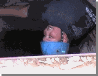 Wet, muddy, grazed, upside down and still smiling Rhys is determined to conquer the tunnels at Manjedal 2001