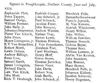 Some of Those who signed the Association in Poughkeepsie, Duchess County