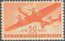 Scott # C31 50c Transport Plane Orange Mint NH VF