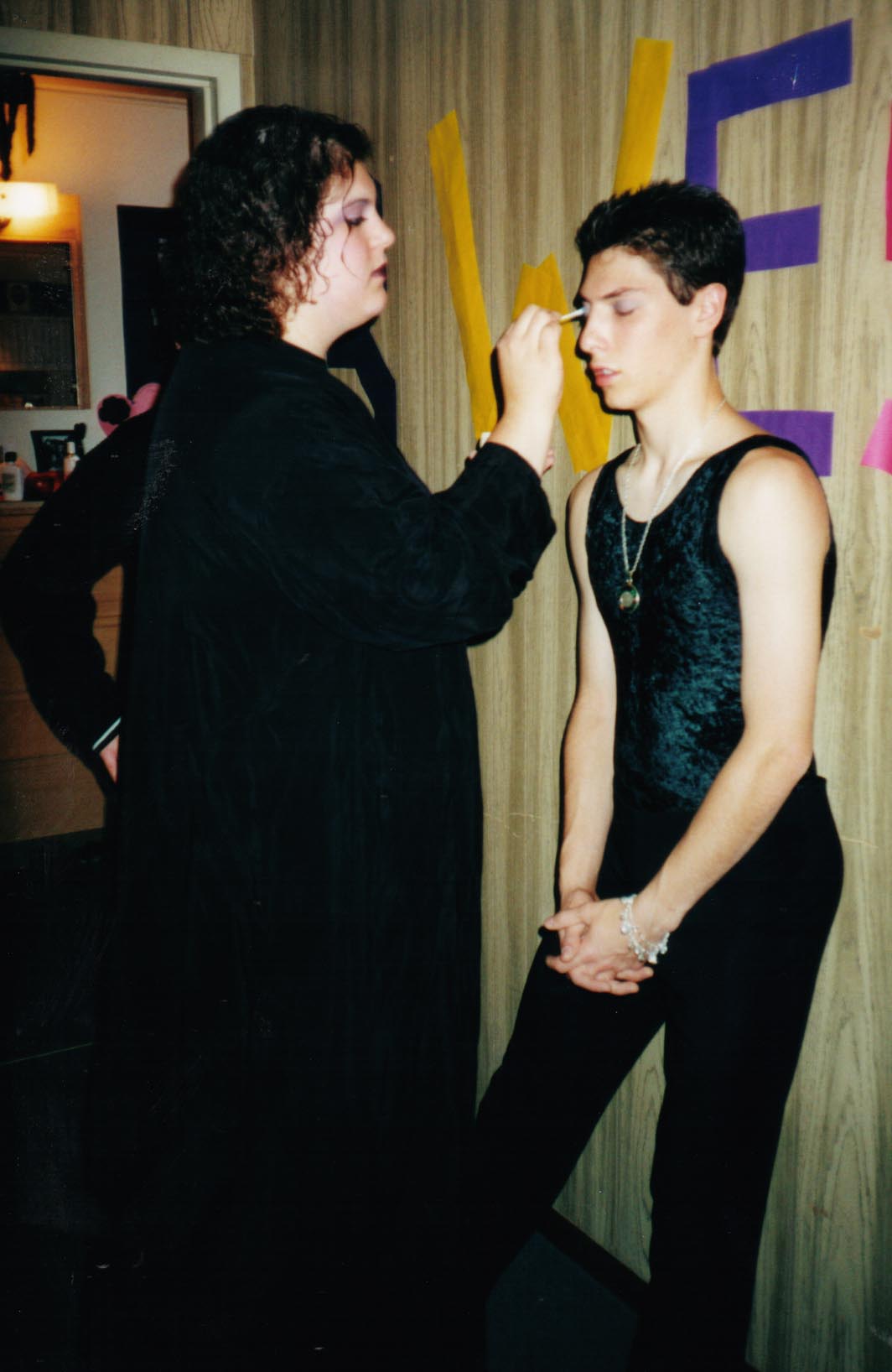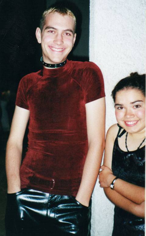 | Rainbow Rage is an annual event put on by Coalition Against Homophobia-- it's a dance where everyone seems to dress like sluts. Actually, it's a lot of fun. I got to wear my nifty dragon dress, which _I_ thought was plenty slutty, but compared to most people, it was downright tame. We went as a group: Michelle, me, Laura, and Jerry and Jamie, Laura's friends from home. |