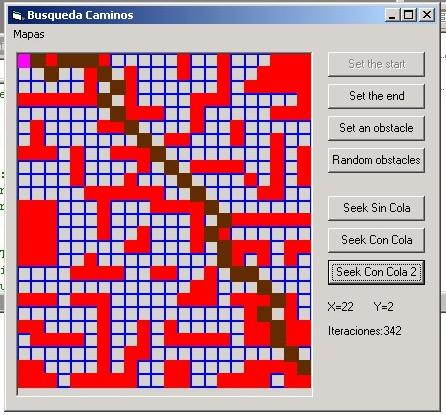 It's a pathfinding program, you can make maps blocking and unblocking tiles and then seek paths between two tiles with three different versions of the Dijkstra's pathfinding algorithm Check it out, it was pretty illustrative for me! ^_^ |