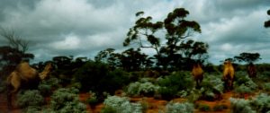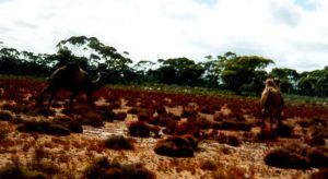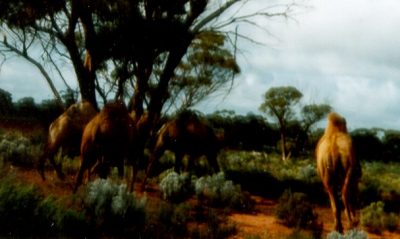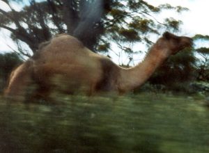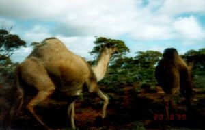 ![]() A camel in full flight across a clay pan.