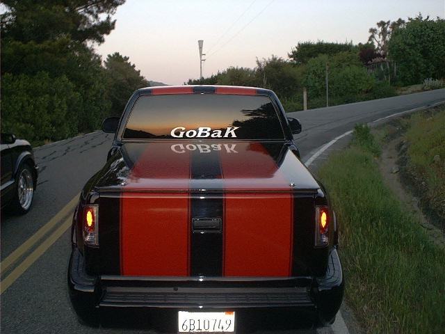 | Exterior Modifications: SS Bowties Gold Bowties Red Reflective Tape on Gold Bowties on Caps Reflective Lettering in Liscense Plate Filler Limo Tint all around Lo-Pro Tonneau cover Bedrug Carpeted Bedliner Tinted taillights Clear Corners SS Bowtie in the Grille Red racing stipes |