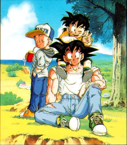 Krillin, Goku and Gohan taking a well-deserved break from fighting universe-destroying monsters. |