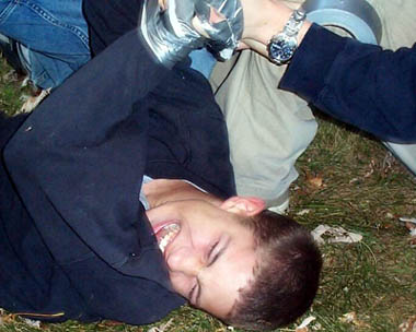 And little boy tries to get away...poor kid didn't like the smelly cheap duct tape....