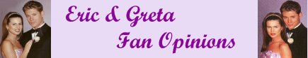 I think that Eric and Greta are great toogether. There is only one problem. The problem is is that Greta is too worried about Eric still being in love with Nicole. Yeah she has a right to be because of what happened during the photo shoot but, still come on! she needs to give Eric some more slack!