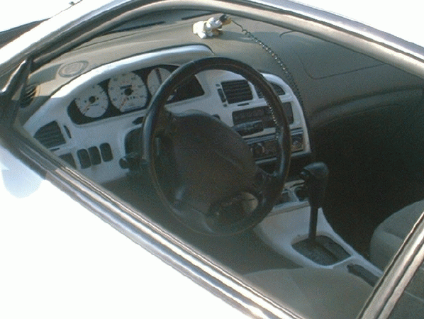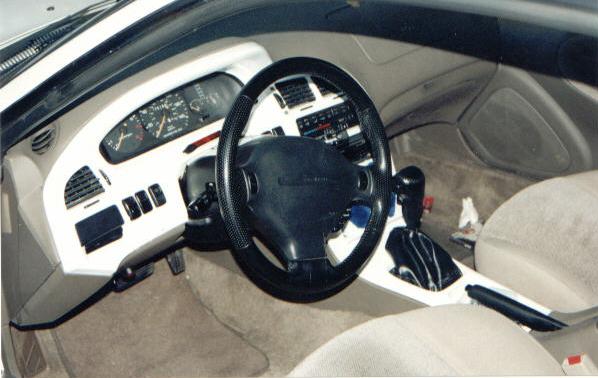 This is an interior picture of the drivers side of my car w/ my painted white dashboard
