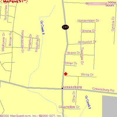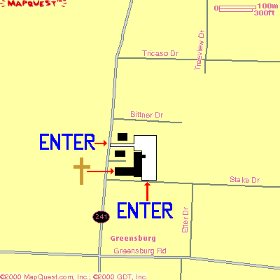 Enter from Stake Dr. or the drive between the two houses.