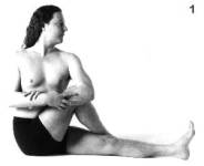 mano che tiene il ginocchio sinistro o il piede destro. Le spalle sono sulla