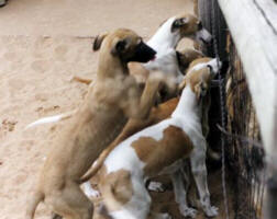 Ed. note: We would like to thank Andi & Bernie Collette for letting use these photos & also their hospitality; visits to their farm are always a learning, enjoyable experience. The 6 pups above right are now racing at Palm Beach, Corpus Christi and Hollywood. Out of Knuckles Up and Sister Act; their names are Tony Soprano, Pop Wheeler, Jewel Fiesta, Win Dial, Spring Moon and Vinny Orlando.