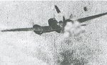 | Gun camera film showing how devastating the 8 x .303 browning machine guns could be. The unfortunate victim is a Heinkel He 111 with bits flying off and smoke pouring out of his starboard engine. |