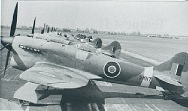 | A line up shot of early production Tempest V's. The first prototype flight was on 2nd Septmeber 1942, the first production Tempest V flight was on June 21st 1943. |