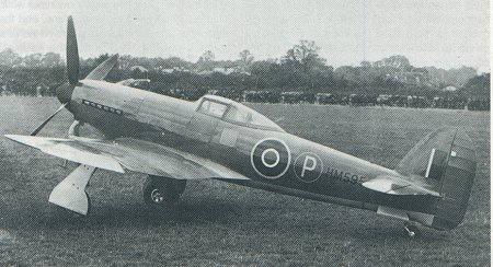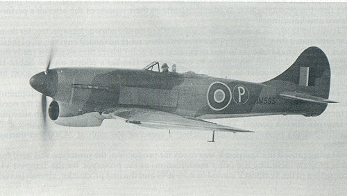 | HM595 again, but this time sporting the new Bubble style canopy and tail unit. The engine on the Tempest V was Napier Sabre II. |