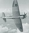 | A classic turning photo of the Tempest V's underside. This photo shows how much the eliptical planform wing shape is similar to that of the Spitfire. |