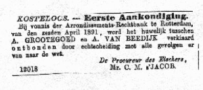 | A | 6-4-1891 | Rotterdam | scheiding |