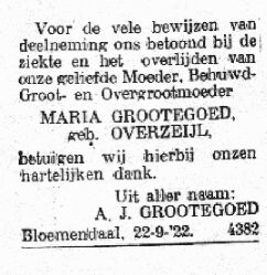 | Maria Overzeijl | 22-9-1922 | Bloemendaal | overleden |