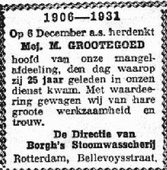| Mej. M | 6-12-1931 | Rotterdam | 25 jarig jubileum |