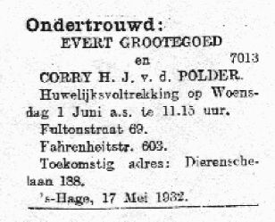 | Evert | 17-5-1932 | 's Gravenhage | verloofd |
