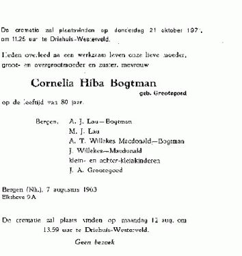| Cornelia Hiba | 7-8-1963 | Bergen | overleden |