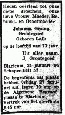 | Johanna Gesina Lalk | 24-1-1956 | Blaricum | overleden |