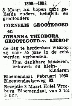| Cornelis | 3-3-1953 | Bloemendaal | 55 jr huwelijk |