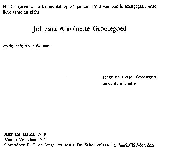 | Johanna Antoinette | 31-1-1980 | Alkmaar | overleden |