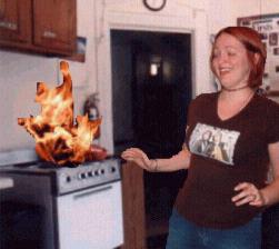 Meg had only been cooking for 2 minutes when the meat loaf caught on fire. “Oops!” yelled Meg as Merry, Pippin, and Sarah began running in circles, not knowing what to do. Legolas gave Meg an “I told you so look” and laughed. Smeagol screamed so hard that Laura, Sam, and Frodo had to cover their ears. Just when all seemed lost, Drew Carey ran into the room with his handy dandy fire extinguisher, and bravely put out the fire. Everyone cheered, and Smeagol began jumping on the couch in confusion.